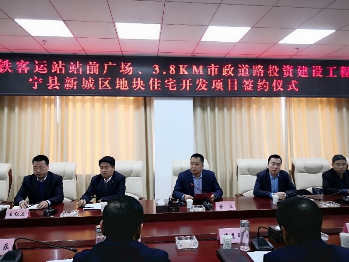 2019年12月4日,寧縣高鐵客運(yùn)站站前廣場、3.8KM市政道路投資建設(shè)工程及寧縣新城區(qū)地塊住宅開發(fā)項(xiàng)目簽約儀式在寧縣人民政府順利舉行。寧縣縣委書記侯昌明,縣委副書記、縣長李鵬飛,縣委常委、常務(wù)副縣長杜豐,縣委常委馬應(yīng)樂,發(fā)改局、自然資源局、住建局、商務(wù)局等各部門主要負(fù)責(zé)人出席儀式。公司董事長胥立、總經(jīng)理張小揚(yáng)、副總經(jīng)理李紅軍、副總經(jīng)理沈?yàn)槊?、副總?jīng)濟(jì)師王紅波出席簽約儀式,相關(guān)部門經(jīng)理和工作人員隨行。