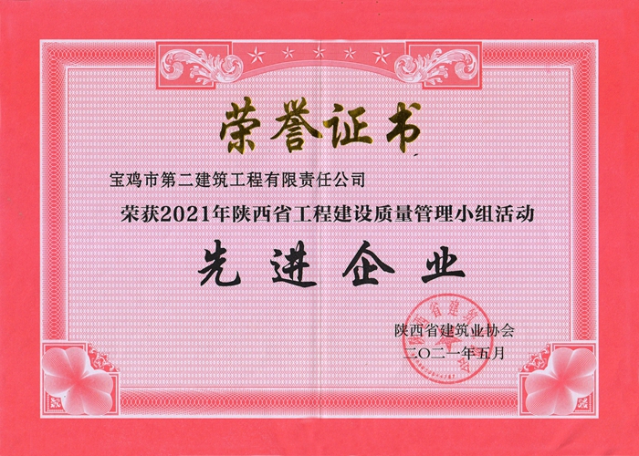 2021年陜西省工程建設(shè)質(zhì)量管理小組活動先進(jìn)企業(yè)