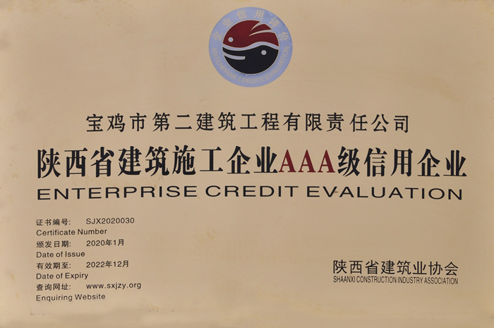 2020年陜西省建筑施工企業(yè)AAA級信用企業(yè)