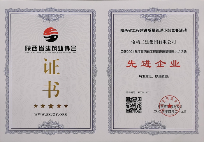 2024年度陜西省工程建設質(zhì)量管理小組活動先進企業(yè)